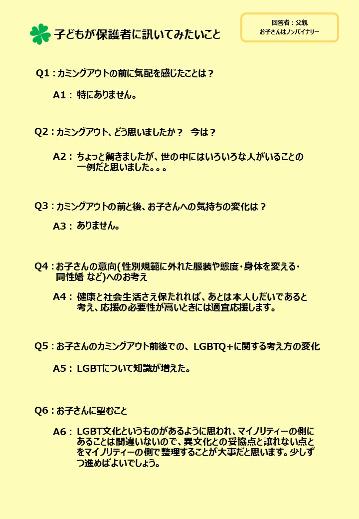 「子どもが保護者に訊いてみたいこと」